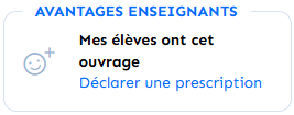 Pour connaître les avantages prescripteur d'un titre, rendez-vous sur la page de l'ouvrage et cliquez sur le bloc Avantages Enseignants.